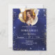 Eine moderne, stilvolle und glamouröse Einladung für eine 21-jährige Geburtstagsparty. Marineblau, mit blauen und Imitaten verziert, goldene Glitzer-Glitzern und goldene Ballons. Die blaue Farbe ist ungleichmäßig. Personalisieren Sie Ihren Namen, Ihr Foto und Ihre Party. Ein Foto im Ballonstil. 1 Blatt = 1 Einladung mit Druckkante bis Kante.