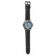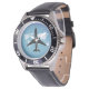 Pilotenuhr mit einem Flugzeug-Bild auf einer Weltkarte mit rustikal blauem Hintergrund.