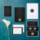 Eine lebendige grüne Lunamotte ist umgeben von Mondphasen und üppigen grünen Blätter auf schwarzem Hintergrund.