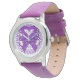 Uhr, Kinderuhr aus Edelstahluhr mit lila Lederarmband