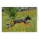 Lurcher, der durch ein Blumen-Feld - Karte läuft