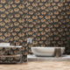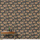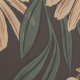 Grosses, weitläufiges Muster mit grünem Blattwerk auf karkohlegrauem schwarzem Hintergrund. Erstellen Sie eine akzentuierte Wand oder kleben Sie die abziehbare Wand auf eine Vielzahl von Oberflächen. Reich warme Farben.