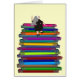 Nonnenkunstkarte, großer Stapel Bücher mit einer Nonne, die zur Spitze klettert. Löschen Sie nach innen, perfekt für jede mögliche Gelegenheit.