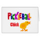 Niedliche lustige pickleball Buchstaben mit pickleball Küken-Cartoon.