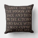 Ein lustiger Entwurf basiert auf den Herzen und Text, bestimmt für ein lesbisches Paar. Das Kissen wird mit den umrissenen Herzen gefärbt rosa bedeckt, und ein größeres Set von zwei rosa Herzen wird zentriert. Ein enormer Text wird in playful Schriftart geschrieben: "ICH LIEBE SIE ZUM MOND UND ZUR RÜCKSEITE UND DANN ZUR KÜCHE UND ZUR RÜCKSEITE MIT EINER NETTEN TASSE TEE - FÜR MICH…". Ein hübsches süßes und lustiges Zitat, das leicht besonders angefertigt werden kann. Ersetzen Sie "Tee" durch "Kaffee", wenn das Ihr… um ist, Tasse Tee. Feste dunkle Hintergrundfarbe kann auch justiert werden. Merken Sie, dass, wenn Sie einen helleren Hintergrund wählen, der Text eine dunklere Schriftartfarbe benötigen könnte.