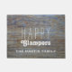 Lustiges Campingsdekorgeschenk für rvers, pensionierte Reisende, entspannende Fahrzeughalter und RV-Lagerbewohner, ist diese personalisierte hölzerne Blickfußmatte, die glückliches Glampers in einer ungewöhnlichen Mischung der rustikaler und Glamourbeschriftung lesen. Textschablone für das Hinzufügen des Familiennamens an der Unterseite in den weißen, modernen Buchstaben. Gegen ein Hintergrund-Foto des rustikalen, beunruhigten Holzes, das geschrammt und alt ist. Großes Ruhestandsgeschenk, auch. Seien Sie zu Hause vor einem RV oder einem gemütlichen Blockhaus recht. Nettes Familiengeschenk für das Bündel, das in der Art reisen und kampieren mag.