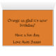 Jeder Lieben der orange Witz, besonders Kinder. Überraschen Sie Ihr Lieblingskind (oder Erwachsenen) mit dieser lustigen Karte mit einer klaren Orange auf der Front. Der Text ist einfach besonders anzufertigen.