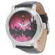 Uhr, Vintage Männeruhr mit schwarzem Lederarmband
