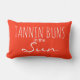 Lässt lustiges Sprichwort gebranntes orange Kissen im Freieneinen großen Patiodekor ausbessern und fügt irgendeinen Spaß dem Sommer hinzu. Beide Seiten des Akzentkissens sind Leuchtorange und Vorderseite hat lustige Phrase "Gerbsäurebrötchen in der Sonne" in der weißen Typografie. Fertigen Sie Farbe und Wörter von Ihnen Wunsch besonders an.