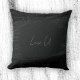 Teilen Sie Ihre Liebe mit, ob es Valentinstag ist oder jeden Tag! Passen Sie dieses moderne, schwarze Kissen an, künstlerisch entworfen mit gezeichneten Linien, mit Ihrem persönlichen Text oder Namen. Weitere Farben finden Sie in meinem Sunny Mind Shop. Viel Spaß! ©Susanne Sachers - Sunny Mind Design