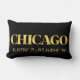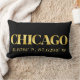 Das Lux Lumbar Akzent Kissen Design zeigt die Längen- und Breitengradkoordinaten der Stadt Chicago in goldenen Schriftart auf schwarzem Hintergrund