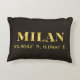 Das Lux Akzent Kissen Design zeigt die Stadt Mailand, Italiens Breiten- und Längenkarte Koordinaten in goldenen Schriftart auf schwarzem Hintergrund.