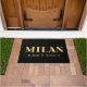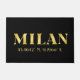 Lux Front-Tür-Design zeigt die Stadt Mailand, Italiens Breiten- und Längenkarte Koordinaten in goldenen Schriftart auf schwarzem Hintergrund.