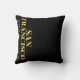 Lux wurf Kissen Design zeigt die Stadt San Francisco's Breiten- und Längenkarte Koordinaten, vertikal platziert, in goldenen Schriftart auf schwarzem Hintergrund.