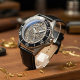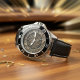 Herrenuhr aus Edelstahl mit schwarzem Lederarmband
