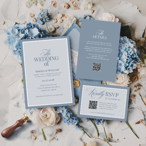 Luxe Dusty Blue with RSVP QR Code | Wedding Einladung