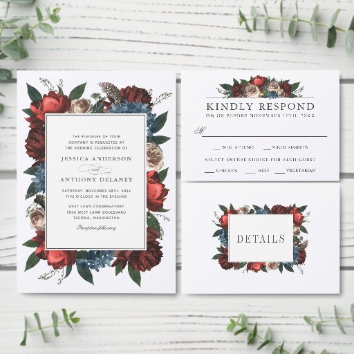 Luxuriöse Juwelenfarben in Rot, Bordeaux, Blau, Rosa und Grün verleihen dieser Brautdusche einen besonderen Stil. Es ist eine wunderbare Wahl für Brautpartys im Herbst, Winter oder während der Ferienzeit. Personalisieren Sie den Text mit Ihren Daten mithilfe der einfach zu verwendenden Textvorlage. Das schöne Kunstwerk, das in diesem Design verwendet wird, stammt von www.createthecut.com.