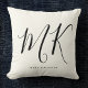 Dieses elegante, elegante, monogramm Dorfkissen in Elfenbein und Schwarz ist ein elegantes minimalistisches Design, das Ihr Monogramm in einem handgeschriebenen Skript in eleganter Serifentypografie kombiniert.