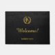 Türmatte mit Imitaten, goldenes Schere-Logo und Ihr Friseurwerkername auf schwarzem Lederhintergrund