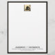 Dieses luxuriöse Business-Letterhead besticht durch ein auffallendes quadratisches Logo-Medaillon aus gebürstetem Gold mit zwei überlappenden Initialen, die Ihre Marke elegant darstellen. Der weiße Hintergrund ist gerahmt mit einer kühnen schwarzen Lederabdruck-Grenze und schafft so einen raffinierten Look, der perfekt für die Geschäftskorrespondenz geeignet ist. Personalisieren Sie mit Ihrem eigenen Namen und Kontaktinformationen, um einen wirklich benutzerdefinierten Briefkopf zu erstellen, der sicher beeindrucken wird.
