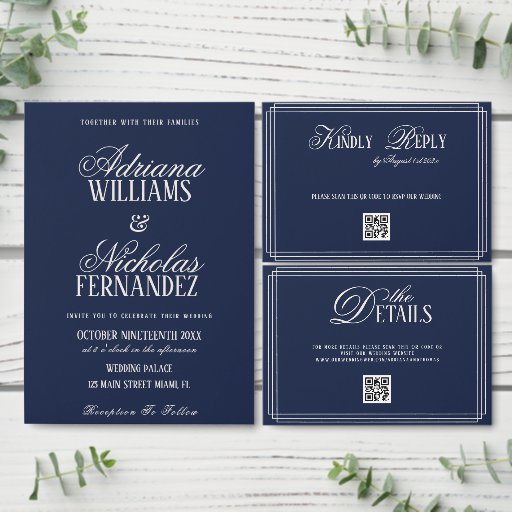 Luxury Navy Blue Monogram Wedding Einladung (Personalisiere diese Kollektion eines unabhängigen Creators.)Luxury Navy Blue Monogram Wedding Einladung (Rückseite)Luxury Navy Blue Monogram Wedding Einladung (Stehend Vorderseite)