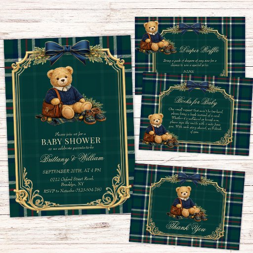 Luxury Preppy Teddy Bear Baby Shower Diaper Raffle Begleitkarte