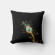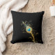 Mit diesem angesagten Pfauenfederkissen mit einer eleganten goldenen Pfauenfeder und einem einzigartigen, blau-herzförmigen Pfauenauge vor schlichtem schwarzem Hintergrund machen Sie ein Modestatement.
