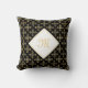 Ein luxuriöses, schwarz und goldfarbenes Vierpunkt-Vierpunkt-Blumenmuster Quadratwurfkissen, das durch Hinzufügen Ihres Monogramms personalisiert werden kann. Dieses elegante, Vintage mit Monogramm Damast-Design wird Ihre raffinierte Seite hervorheben. Flachbild, nicht metallisch.