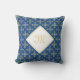 Ein luxuriöses, blau und goldfarbenes Vierpunkt-Vierpunkt-Blumenmuster Quadratwurfkissen, das durch Hinzufügen Ihres Monogramms personalisiert werden kann. Dieses elegante, Vintage mit Monogramm Damast-Design wird Ihre raffinierte Seite hervorheben. Flachbild, nicht metallisch.