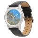 Uhr, Klassische Damenuhr mit schwarzen Lederarmband