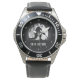 Uhr, Vintage Männeruhr mit schwarzem Lederarmband