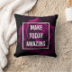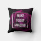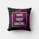 Ein Kissen mit dem inspirierenden Text: machen Sie heute phantastisch. Entworfen mit einem Foto einer geheimnisvollen lila-rosa gotischen Rose.