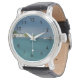 Uhr, Vintage Männeruhr mit schwarzem Lederarmband