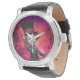 Uhr, Vintage Männeruhr mit schwarzem Lederarmband