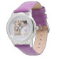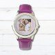 Uhr, Kinderuhr aus Edelstahluhr mit lila Lederarmband