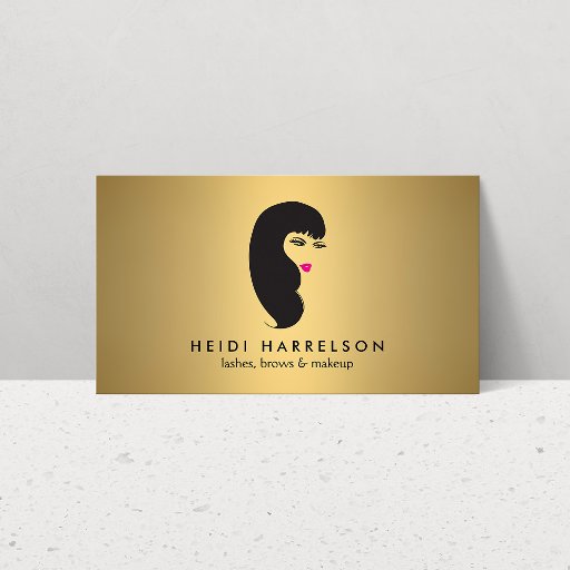 Eine fette, schwarze Farbillustrierung eines Mädchengesichts mit Wimpern und rosa Lippen ist das perfekte Maskottchen auf dieser Visitenkartenvorlage für Schönheit. © 1201AM CREATIVE