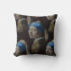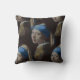 Dieses Kunstwerk ist ein künstlerisches Muster mit einer selbstgemachten, gesteppten Nachbildung des berühmten Ölgemäldes "Girl with a Pearl Earring" des holländischen Goldenen Zeitalters Johannes Vermeer um 1665. Das Bild zeigt ein europäisches Mädchen, das in einem "exotischen Kleid", einem "orientalischen Turban" und einem prominenten Perlenohrring verziert ist. Das Originalgemälde befindet sich in der Sammlung Mauritshuis in Den Haag, Niederlande. Die unverwechselbare Struktur und die Materie machen es zu einem einzigartigen, angenehmen und raffinierten Geschenk für Kunstliebhaber, Buchleser, Kreuzstifter, Crafters und Perlenohrliebhaber. Egal ob Zuhause, Büro, Café, Lounge oder Bibliothek, dieses Kissen verleiht jedem Raum eine einzigartige Eleganz und Originalität. Bei Fragen oder speziellen Anfragen wenden Sie sich bitte an den Künstler unter wafadahdalcreates@gmail.com. © Wafa Y. Dahdal - Alle Rechte vorbehalten. WD Art