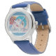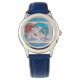 Kinderuhr aus Edelstahl mit blauem Lederarmband