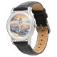 Uhr, Klassische Damenuhr mit schwarzen Lederarmband