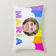 Helles, farbenprächtiges, mit Regenbogen gestreiftes Kissen. Personalisieren Sie mit Ihrem eigenen Namen und Foto auf der Vorderseite.