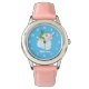 Kinderuhr aus Edelstahl mit rosa Lederarmband