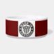 Große Hundeschüssel oder Haustierschüssel mit dunkelrotem Hintergrund und einem Rundschreiben Made in America Abzeichen