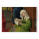 Vintage Bild von Frau in grünem Gewand, die ein Buch in ihrem Schoß hält, während sie auf dem Boden sitzt. Kunstkunst des frühen flämischen Malers Rogier van der Weyden c 1450.