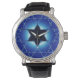 Uhr, Vintage Männeruhr mit schwarzem Lederarmband
