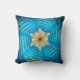Ein blauer und gelber Fraktal Star of David auf einem dunklen Hintergrund. Fügen Sie auf der Rückseite Ihren eigenen Text hinzu.