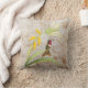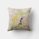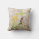 Quadratische Throwkissen-Ausrüstungsbeschreibungen eine Vintage Illustration des Magentarot-throated Woodstar Kolibris (Calliphlox bryantae.) Ein grüner Kolibri mit einer hellen magentaroten Kehle hockt auf einem gelben bromeliad, auf einem elfenbeinfarbenen Vintagen Grungehintergrund mit GoldWirbel und BlumenSilhouetten.