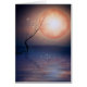 Ein reizendes Bild eines enormen belichteten rosa Vollmonds glänzt und reflektiert sich im plätschernden blauen Wasser unten. Aus dem Wasser heraus, das eine Singleniederlassung bis zum Himmel, ein wenig des Treibholzes erreicht, ist hinter ihm. Blitzwanzen, Feen oder andere funkelnde Gegenstände erscheinen während der Szene. Der Horizont des hügeligen Landes wird im Hintergrund silhouettiert, aber der Mond scheint fast naher. Fantastischer Art.