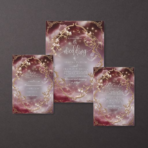 Magische Rose Gold Verziert Barock Hochzeit Einlad Einladung (Personalisiere diese Kollektion eines unabhängigen Creators.)Magische Rose Gold Verziert Barock Hochzeit Einlad Einladung (Vorderseite)Magische Rose Gold Verziert Barock Hochzeit Einlad Einladung (Rückseite)