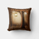 Kissen mit einer skurrilen bezaubernden Abbildung in kräftigen Brauntönen und Gelb. Ein magischer mystischer Wald mit einem großen Baum, der eine alte Laterne hält. Luftlichter tanzen überall herum. Ein bezauberndes, wunderbares Design.