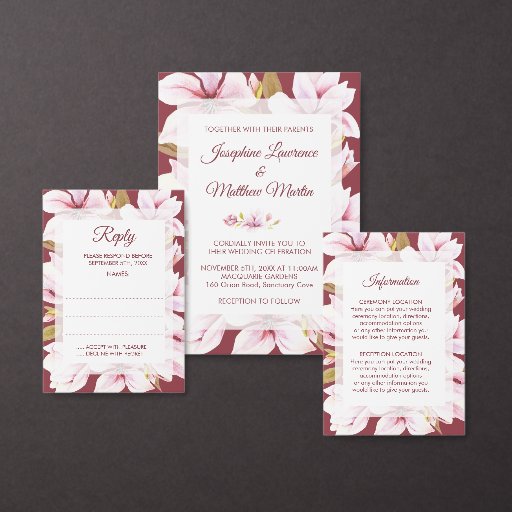 Magnolia Romance Burgundy Wedding CollectionDesignt von Gail K